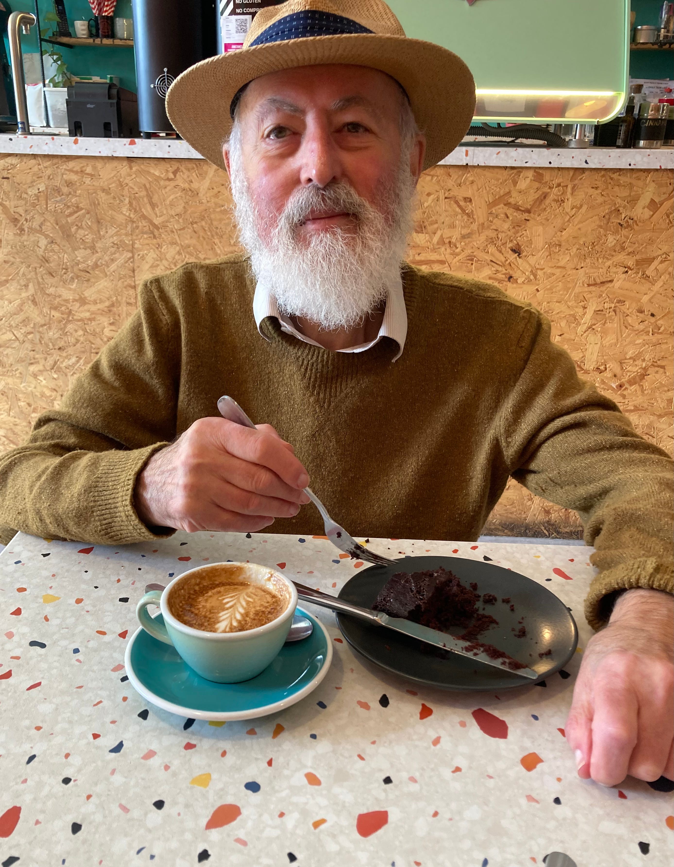 As we emerged from the plane, blinking, into the sunlight, I could see dad via his distinctive silhouette; the outline of his pointed grey beard, his strong Jewish nose, and his wide-brimmed hat. (An inveterate headgear enthusiast, he’d selected a dashing Italian straw hat for this trip, which drew approving nods from the suave gentleman at passport control).