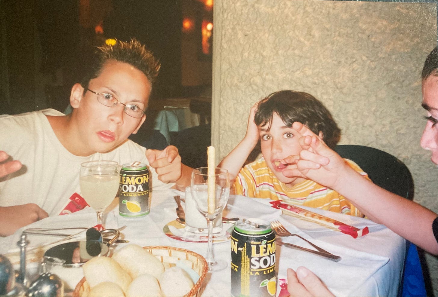 As we had sat down for dinner, minutes before, one of my brothers had done the seemingly impossible – placed a breadstick in a wineglass, and somehow managed to balance it upright. It was, clearly, a momentous, important achievement - and one, I decreed, winding the film along to its final shot and handing it to my mum, was obviously worth capturing for posterity. Click.